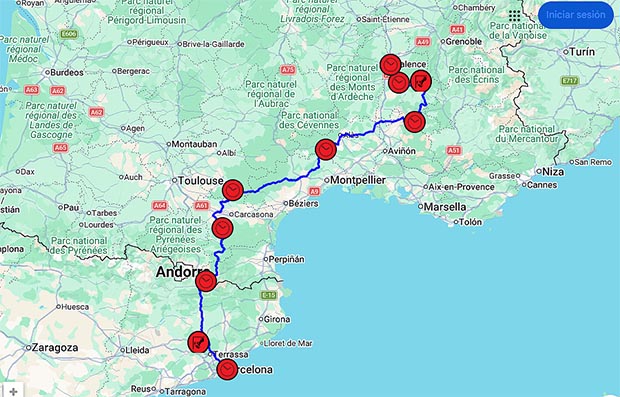 Recorrido desde Barcelona - Manresa-Puigcerdà (es)-Bour Madame-Valence (fr) Monte Carlo:
