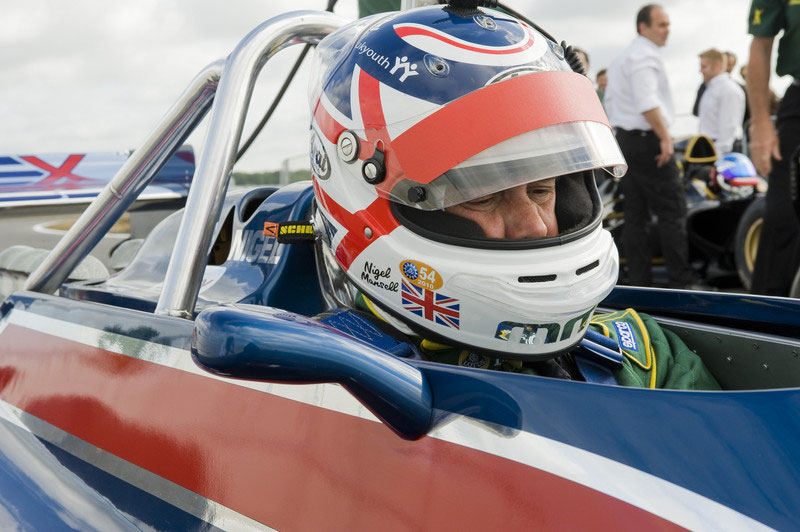 Mansell encabezó un convoy de siete coches de competición Lotus, incluyendo el innovador Tipo 88 de doble chasis de 1980.