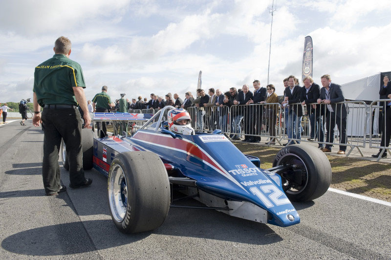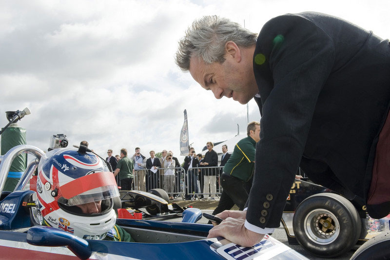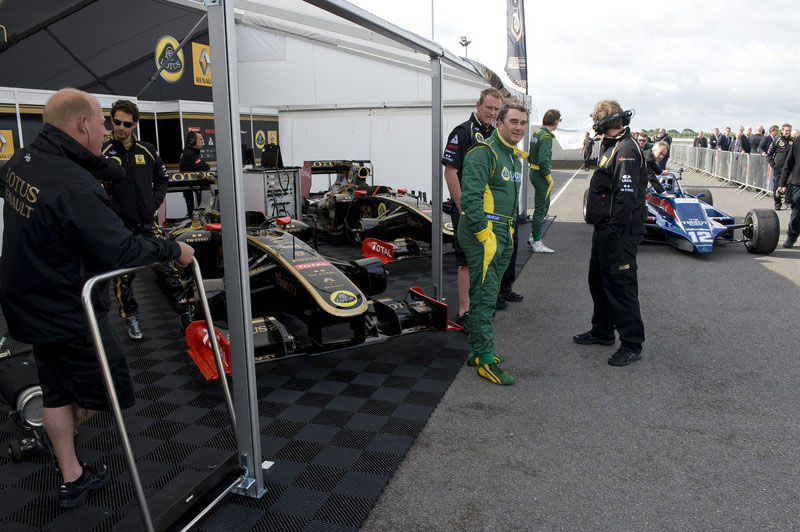 Left to Right: Jean Alesi (Group Lotus Ambassador); Greg Mansell (Lotus Evora GT4 race car driver), Leo Mansell (Lotus Evora GT4 race car driver); James Rossiter (Group Lotus Factory Driver); Nigel Mansell; Johnny Mowlem (Group Lotus Factory Driver); Bruno Senna (Lotus Renault GP 3rd Driver); Vitaly Petrov (Lotus Renault GP Driver)
